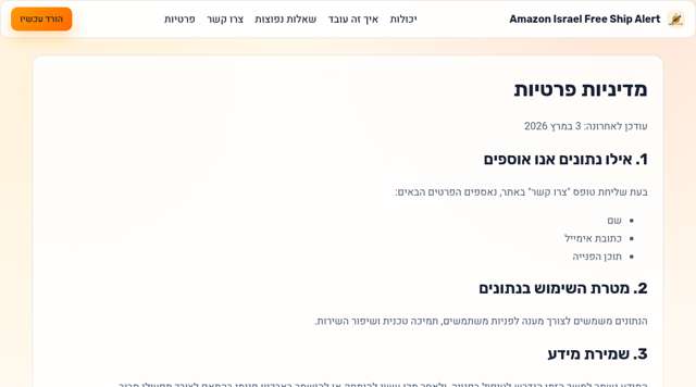 כלי אוטומטי לניטור זכאות למשלוח חינם מאמזון לישראל כדי לחסוך עלויות מיותרות.