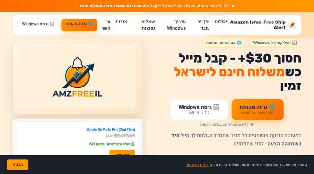 An automated monitoring tool that alerts users when specific Amazon products become eligible for free shipping to Israel.