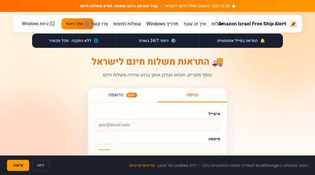 An automated monitoring service that alerts users when Amazon products become eligible for free shipping to Israel.